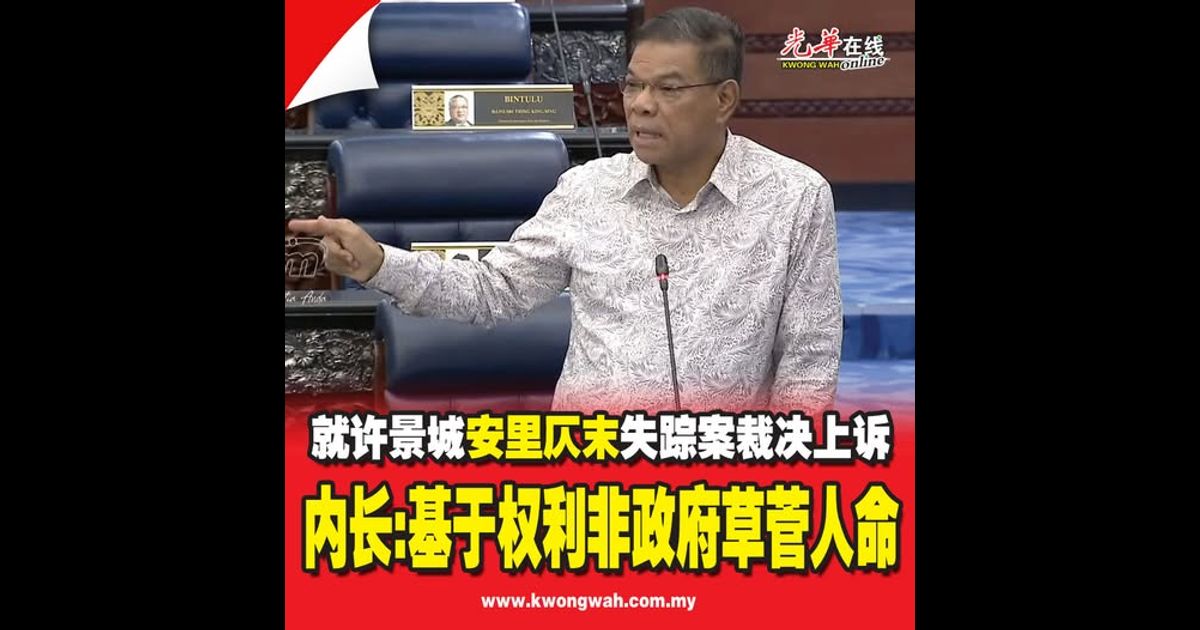 针对许景城安里仄末失踪案裁决上诉 内长:基于权利非政府草菅人命