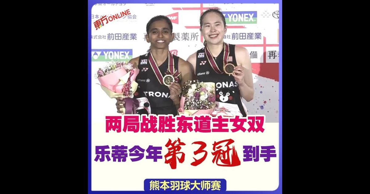 (熊本16日讯)熊本羽球大师赛(超级500赛)决赛今日开打!世界排名第2的大马女双“乐蒂组合”(陈康乐/蒂娜),对上世界排名第7的东道主女双(岩永铃/中西贵映)。