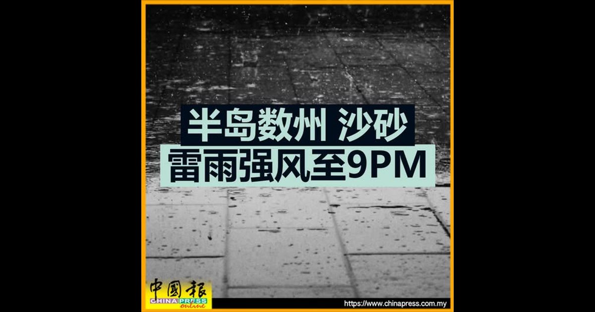(吉隆坡15日讯)半岛数州和沙巴及砂拉越数个地区将迎来雷雨和强风,持续至晚上9时。