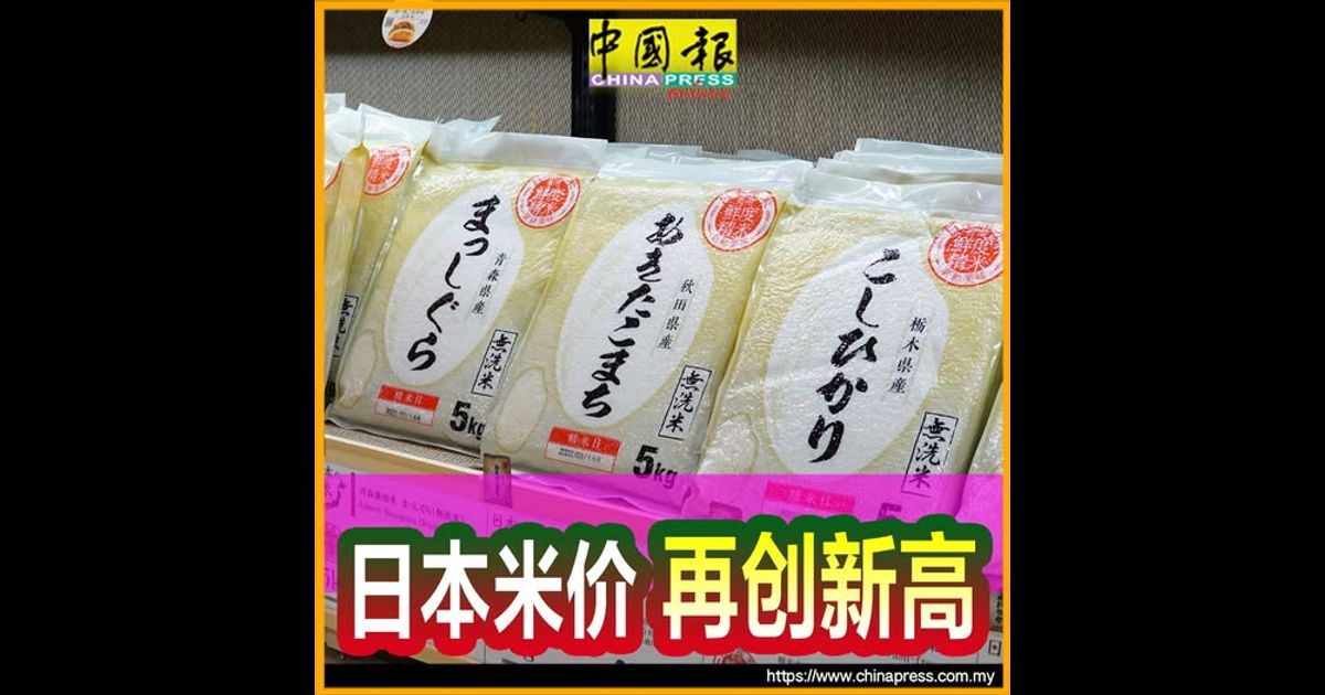 按日本媒体说法,新一轮米价上涨缘于价格高昂的新米上市推高整体价格,以及价格相对低的政府储备米供应减少。目前在日本超市,一袋5公斤装新米的价格普遍超过5000日圆(约133.71令吉)。