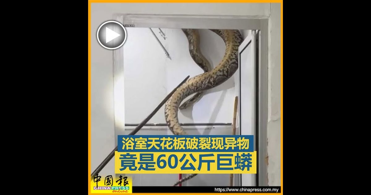 (双溪大年16日讯)家中浴室天花板破裂,露出一块看似蜡染布的东西,起初以为只是普通蟒蛇,岂料民防部队上门捉蛇时,蛇身坠落的瞬间才惊觉竟是一条重约60公斤的巨型蟒蛇!