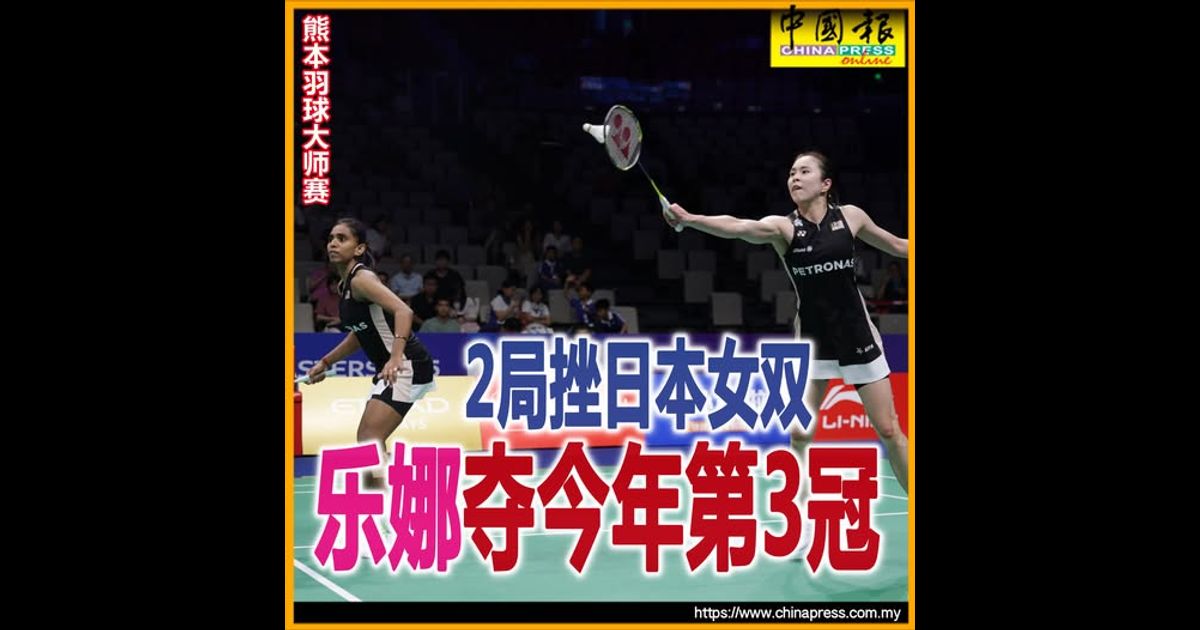 (日本‧熊本16日综合电)大马头号种子“乐娜”陈康乐与蒂娜,今日在熊本羽球大师赛(超级500赛)女双决赛,虽然一度出现险情,但仍惊险过关以22比20及21比19拿下日本组合岩永玲与中西贵映,成功取得了今年的第3冠。