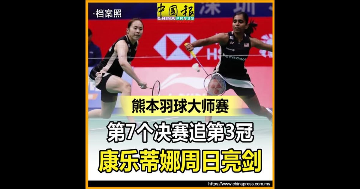 (日本.熊本15日综合电)大马女双“乐娜”陈康乐与蒂娜勇闯熊本羽球大师赛女双决赛!
