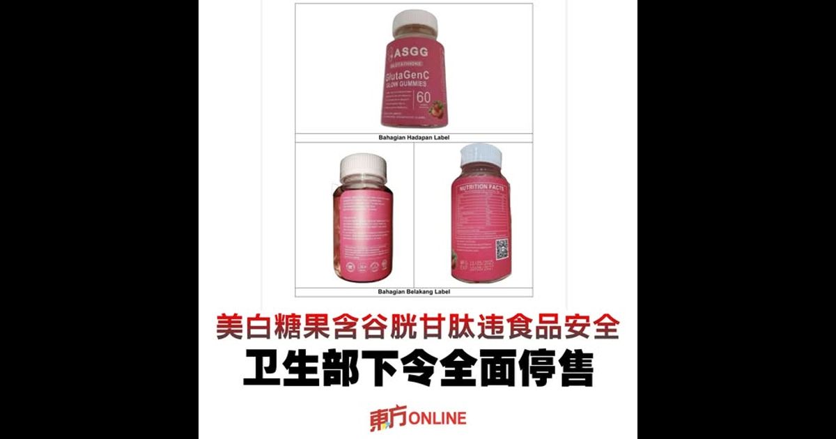 (吉隆坡16日讯)卫生部证实, 美白胶原蛋白糖果“Assg Gluta Genc Glow Gummies” 含有谷胱甘肽(glutathione) 活性成分,而该成分并不被允许作为食品配方。