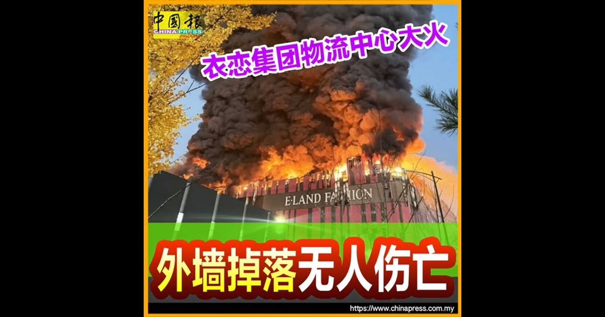 (首尔15日综合电)韩国忠清南道天安市衣恋集团(E-LAND)时尚物流中心周六发生大火,建筑上方楼层陷入火海,冒出浓密黑烟,所幸并未有伤亡传出。