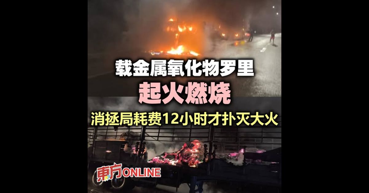 (雪邦16日讯)  南北大道第二中环衔接大道昨晚发生一宗载有金属氧化物的拖格罗里起火事故,消拯局耗费近12小时才将火势完全扑灭,所幸没有酿成伤亡事故。