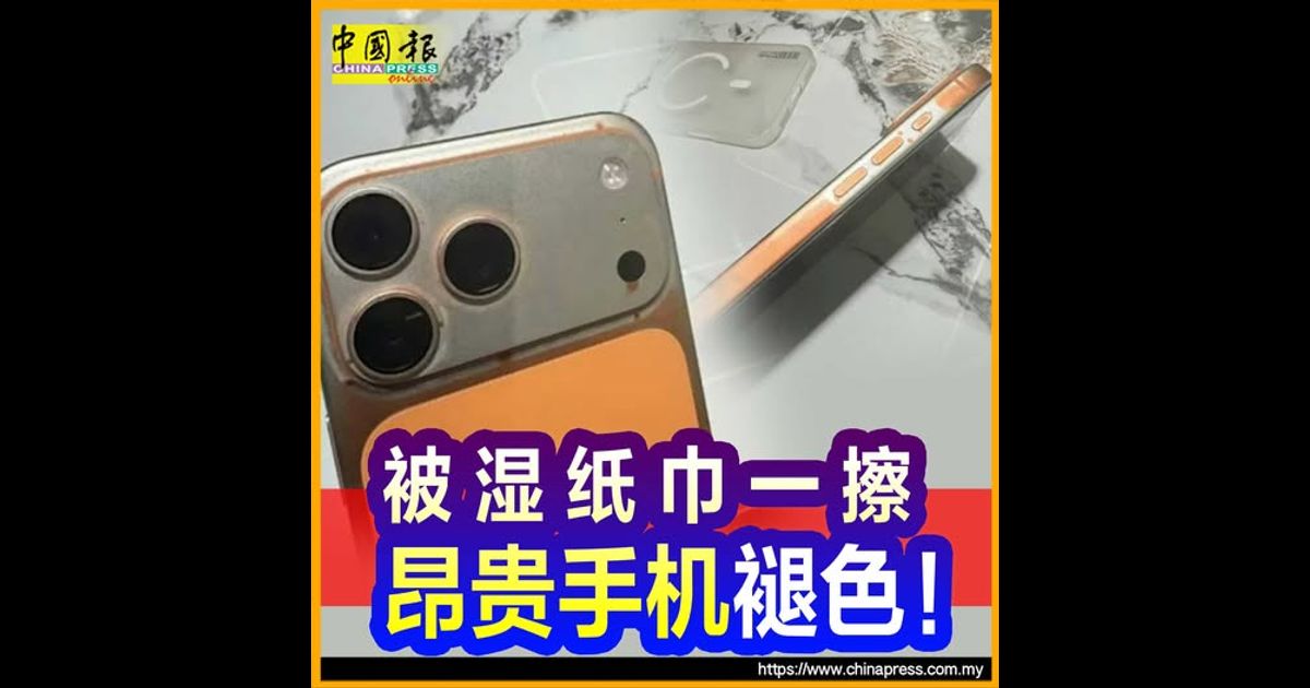 (多伦多17日综合电)苹果今年主推的苹果 17 Pro 宇宙橙原本以高调亮眼的金属橙色吸引大批果粉关注,没想到上市不久就问题频传。继用户投诉机身褪色、颜色转为奇怪的粉橙色后,近日更爆出,湿纸巾竟能擦掉整片漆,而且一擦就掉色!