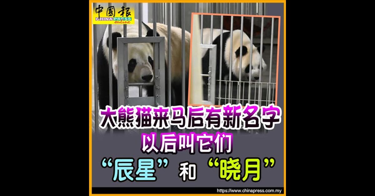 (吉隆坡19日讯)旅马大熊猫“辰星”和“晓月”在大马的新名字,分别寓意为如星辰般耀眼夺目,和如明月般纯净而温柔。