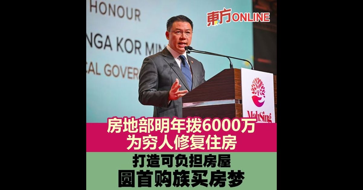 (吉隆坡19日讯)房屋及地方政府部长倪可敏今日表示,为确保落实“居者有其屋”政策,房地部明年将拨出6000万为国内穷人修复住房,同时将继续与私人界携手合作,不遗馀力打造全民友善的可负担房屋,帮助全国房屋首购族一圆买房梦。