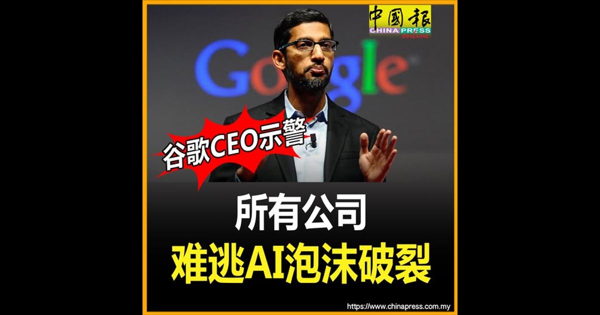 (华盛顿18日综合电)谷歌(Google)总执行长(CEO)皮查伊(Sundar Pichai)警告,如果人工智能(AI)投资泡沫破灭,每一间企业都将遭受波及,但他同时乐观认为,其公司最终能够挺过风暴。