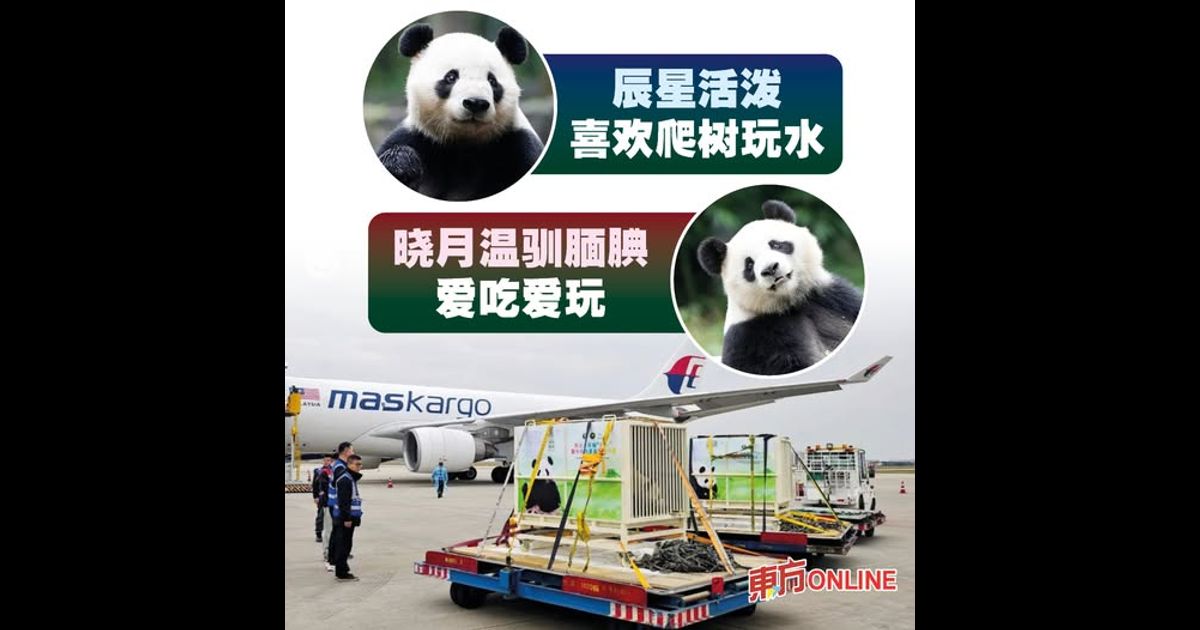 (吉隆坡18日讯)根据大熊猫保护研究中心,今日下午4时07分,中国大熊猫保护研究中心的一对大熊猫辰星和晓月,搭乘专机从成都双流国际机场出发前往马来西亚,这是继今年5月大熊猫福娃和凤仪后,又一对大熊猫前往马来西亚国家动物园旅居,翻开了中马新一轮大熊猫保护国际合作新的一页。