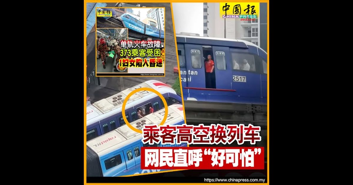 (吉隆坡20日讯)单轨火车因技术问题停驶,乘客被安排在靠近美丹端姑站(Medan Tuanku)的高空轨道上转换列车,网民直言“好可怕!”