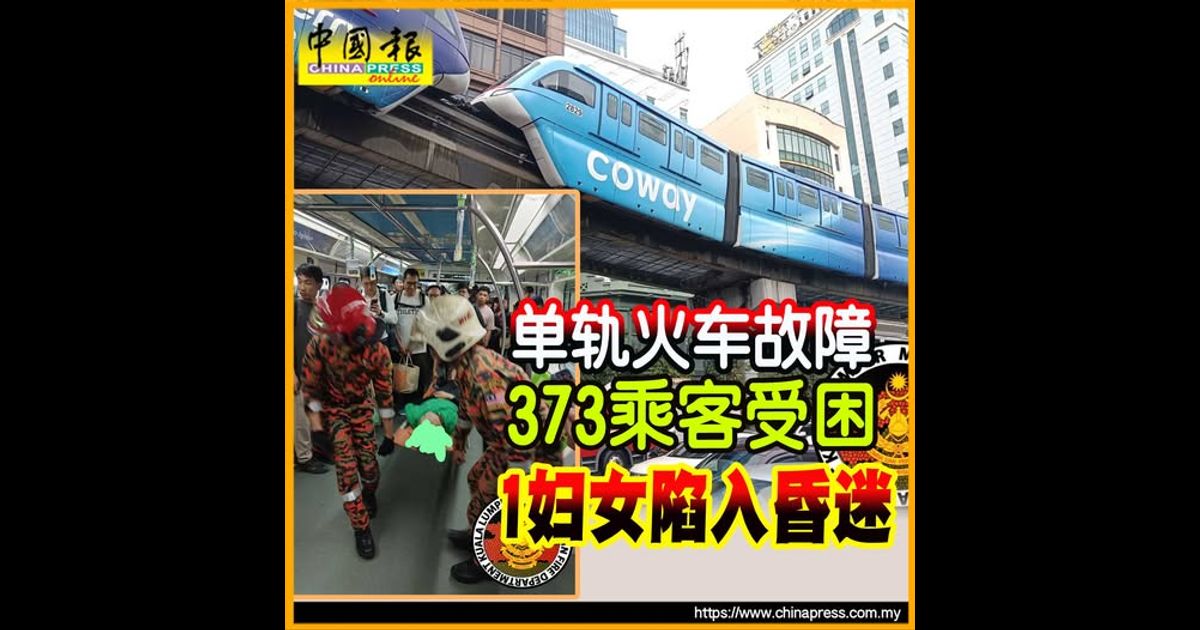 (吉隆坡20日讯)单轨火车发生故障,373名乘客受困,其中一名58岁妇女更因此陷入昏迷,出动消拯员到场施援!