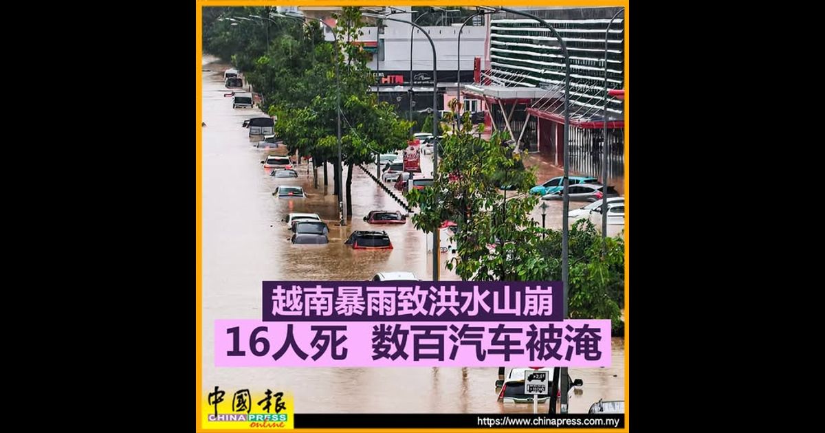 越南暴雨致洪水山崩 16人死 数百汽车被淹