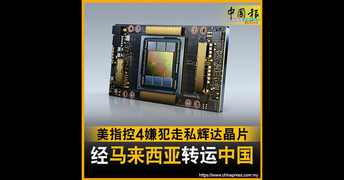 (华盛顿21日综合电)美国持续调查辉达晶片走私案,联邦检察官指控2名中国公民和2名美国公民,涉嫌违反国安出口管制,把数百颗高阶晶片从马来西亚非法运送至中国。