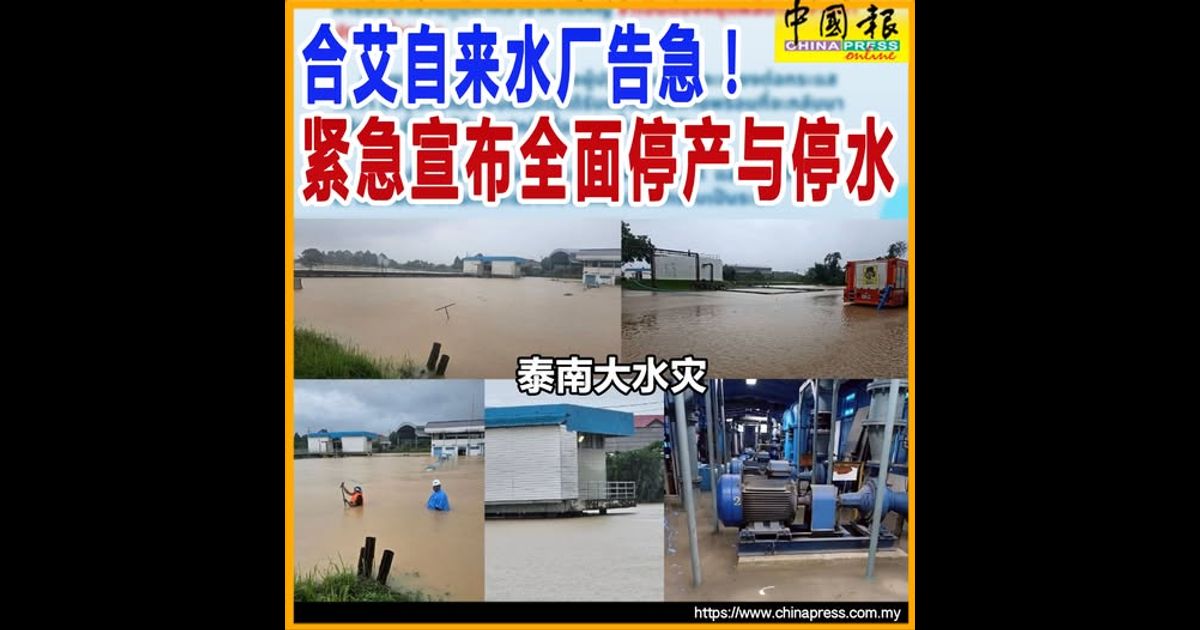 (合艾22日讯)泰南大水灾持续恶化!合艾地方自来水局今日(22日)发出“特别紧急公告”,指由于来自乌达抛河(Khlong U-Taphao)的水位暴涨至 8.20公尺,已达到危急水平,导致自来水厂被迫立即停止生产与供水,合艾多区连续出现全面停水情况。