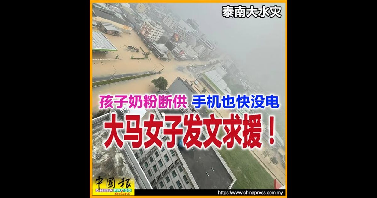 (合艾22日讯)一名与两名年幼孩子被困在泰国合艾水灾中的大马女子,因酒店断电、物资耗尽,被迫在面子书发文向大马驻泰领馆及民众求助!