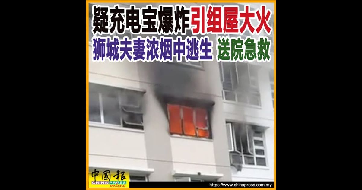 疑充电宝爆炸引组屋大火 狮城夫妻浓烟中逃生 送院急救