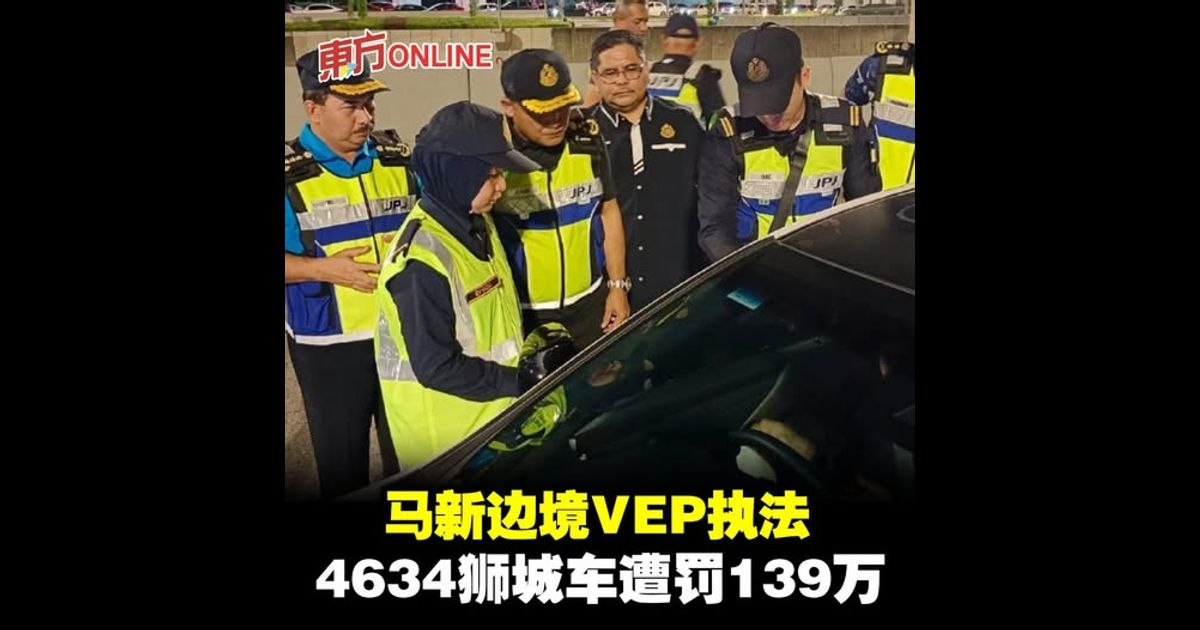 (新山22日讯)“外国车辆入境准证”(VEP)自7月1日正式执法以来,陆路交通局在马新边境共对4634名新加坡车辆车主开罚,罚款总额为139万令吉。