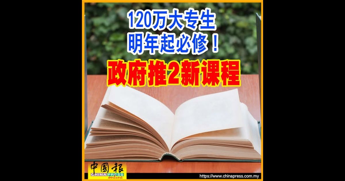 高教部一般科目课程重组委员会副主席拿督斯里沙苏阿姆里说,预计超过120万名学生将修读这两门新课程,其中包括理工学院与社区学院的学生。