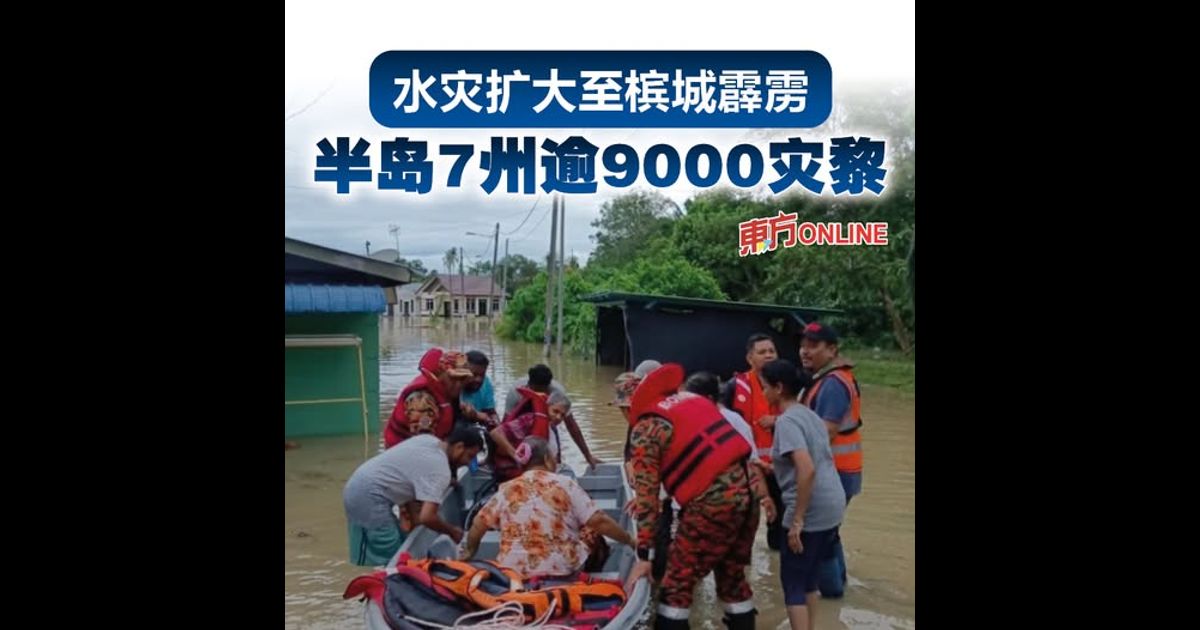 (吉隆坡23日讯)半岛水灾灾情持续,继北马和东海岸州属后,槟城和霹雳成为最新遭遇水灾的州属,截至今晚10时,半岛7州的灾黎人数增加至9084人。