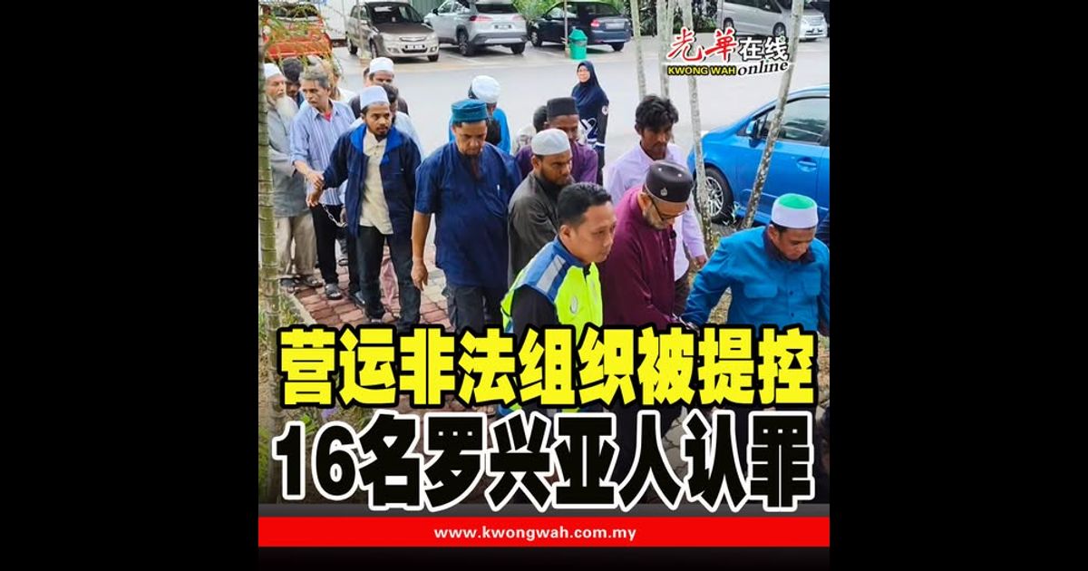 涉嫌营运非法组织,16名罗兴亚男子周三早上大山脚法庭面控时,俯首认罪,共被判罚5万9000令吉罚款,其中9人罚款5000令吉,另7人罚款2000令吉;若无法缴交,9名被告须以6个月监禁代替;另7人则须以2个月监禁代替。