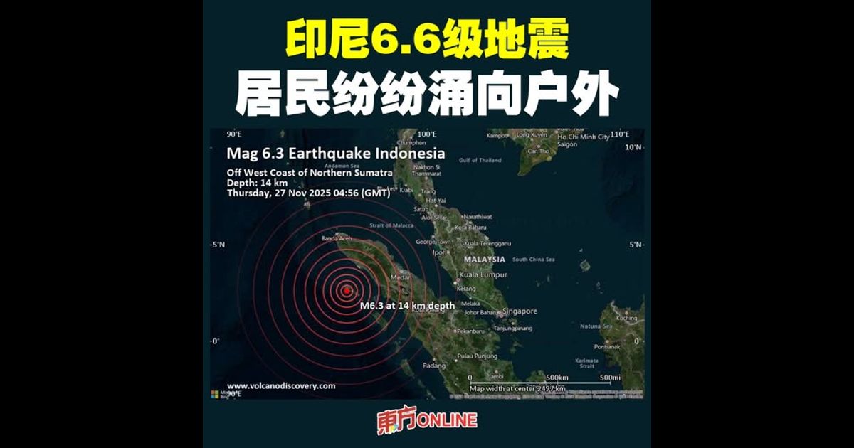 (雅加达27日讯)根据美国地质勘探局(USGS)消息,印尼西部苏门答腊岛附近一座岛屿周四发生里特制6.6级地震,目前尚无人员伤亡或海啸预警报告。