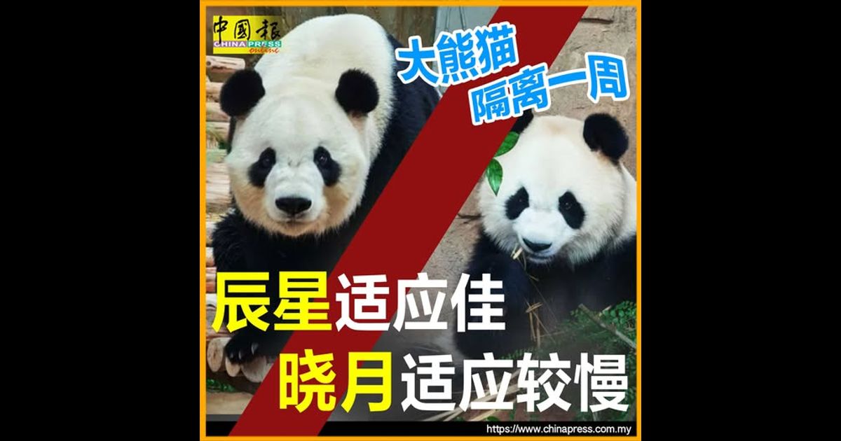 (吉隆坡26日讯)一对旅马大熊猫“辰星”和“晓月”已在国家动物园进行隔离检疫一周,“辰星”适应新环境能力较强,竹子采食量也在逐步增加;“晓月”则受长途运输的影响有不适感,对新环境的适应能力较弱。