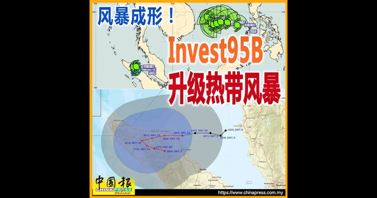 这股“低气压系统”就是早前影响马来西亚半岛西部与北部大部分地区的扰动系统“Invest95B”,但根据美军联合台风警报中心(JTWC)分析,“Invest95B”已经升级为热带气旋,该中心为此发出“热带气旋 04B”警报。