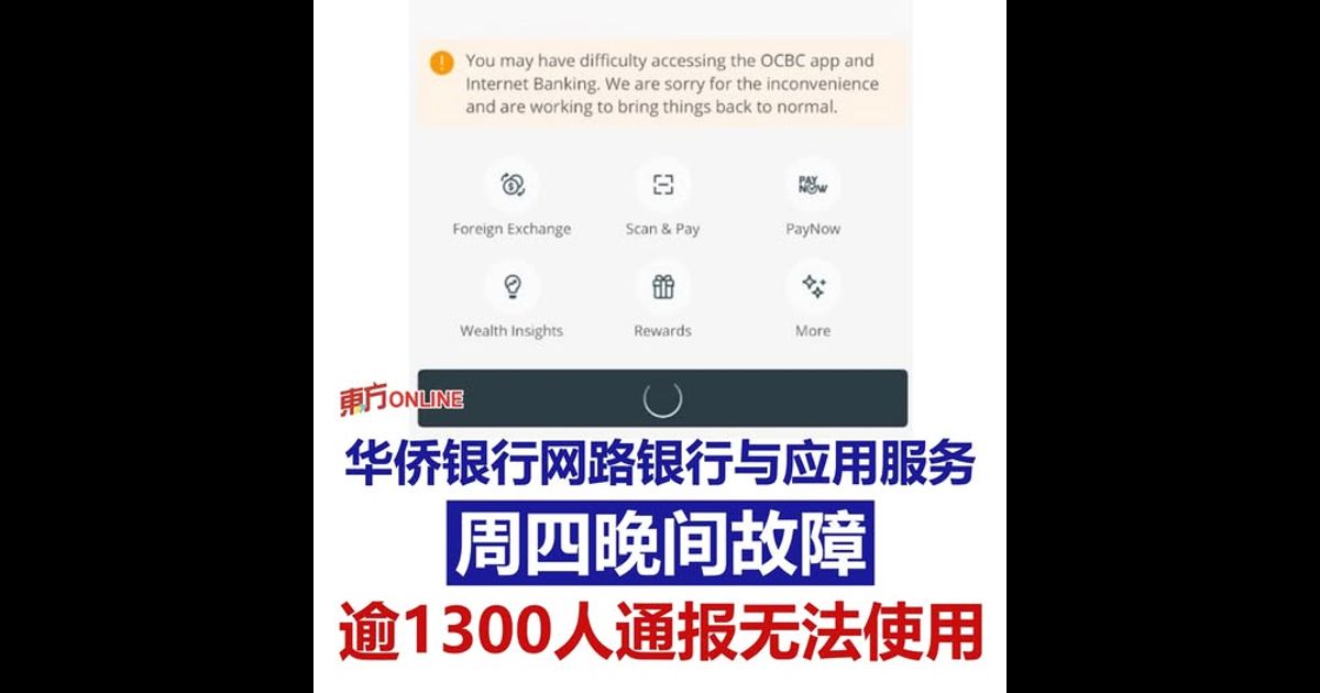华侨银行为服务故障所带来的不便道歉,并会尽快透过社群媒体提供最新消息。