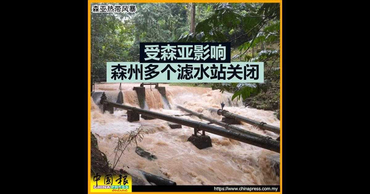 (芙蓉28日讯)热带风暴“森亚”(Senyar)肆虐,带来持续强降雨,导致河水暴涨、水质混浊,并造成滤水站进水口阻塞,森州多个滤水站因此被迫减少运作,以确保供应的水质仍符合卫生部标准。