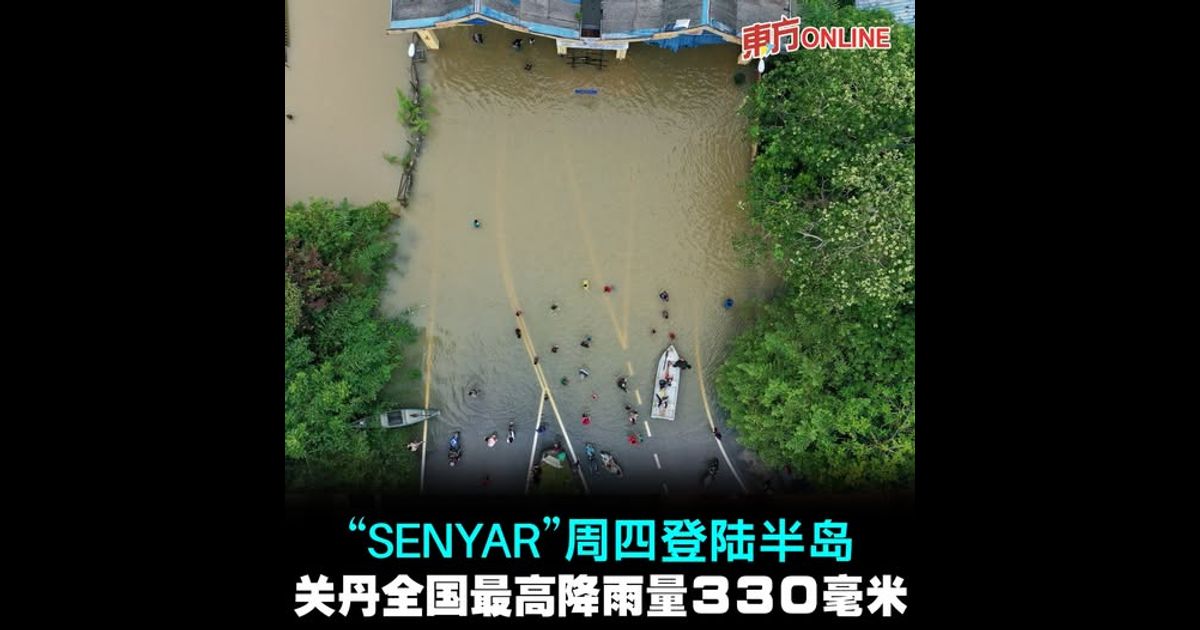 气象局今日发文告表示,尽管热带风暴“SENYAR”已降级为低压系统,但其风力仍为整个大马半岛地区带来持续降雨,且现有的持续降雨警告仍然有效。