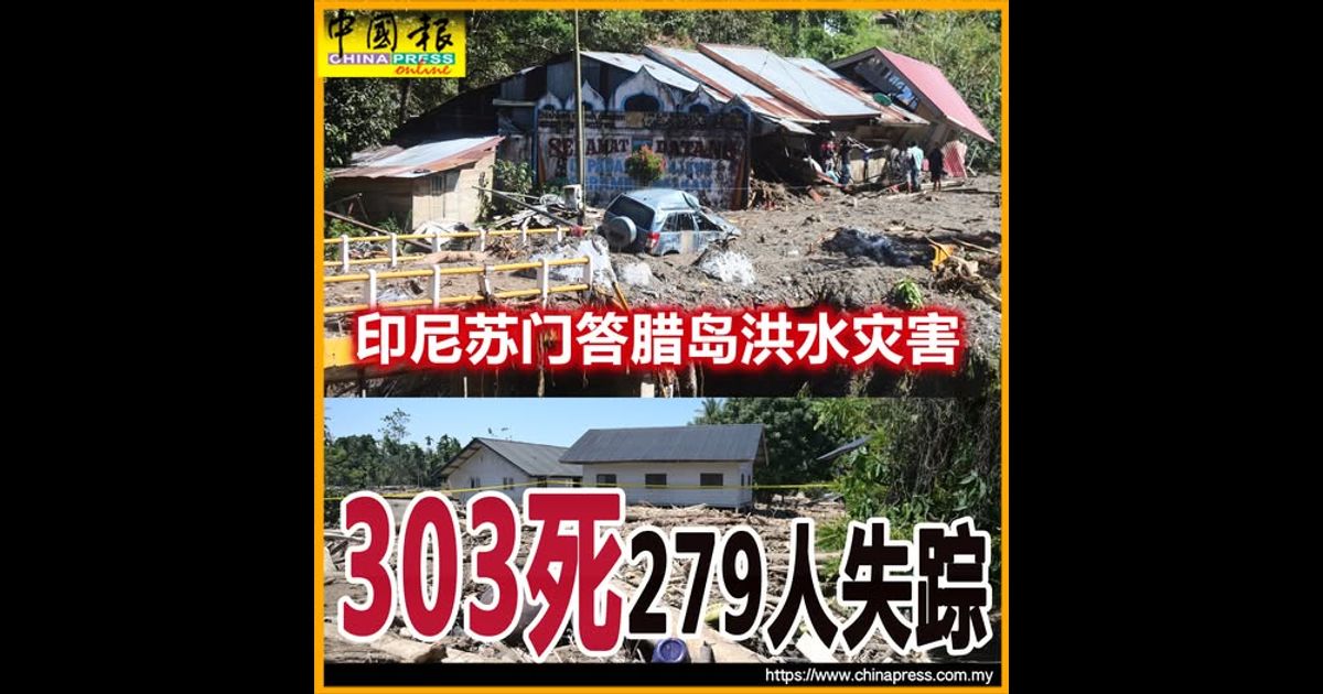 (耶加达30日综合电)印尼苏门答腊岛上周的洪灾和山体滑坡灾害已造成303人遇难、279人失踪。