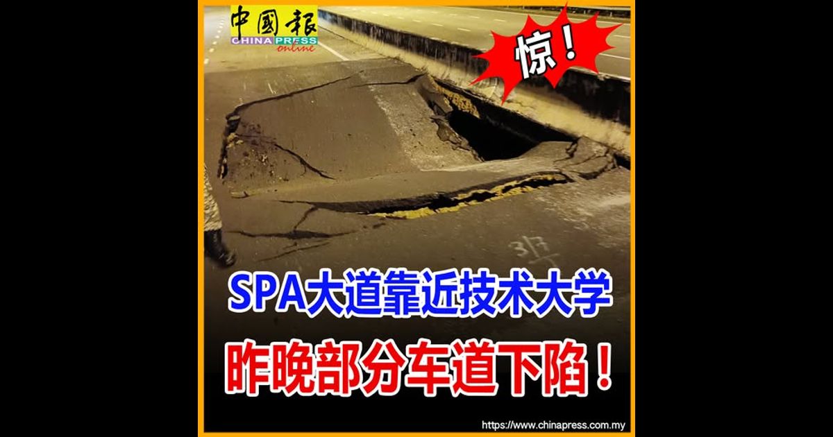 (马六甲30日讯)SPA大道往马六甲马来西亚技术大学(UTeM)方向右车道,昨晚发生路陷事故,形成约10米乘5米大的车道下陷。