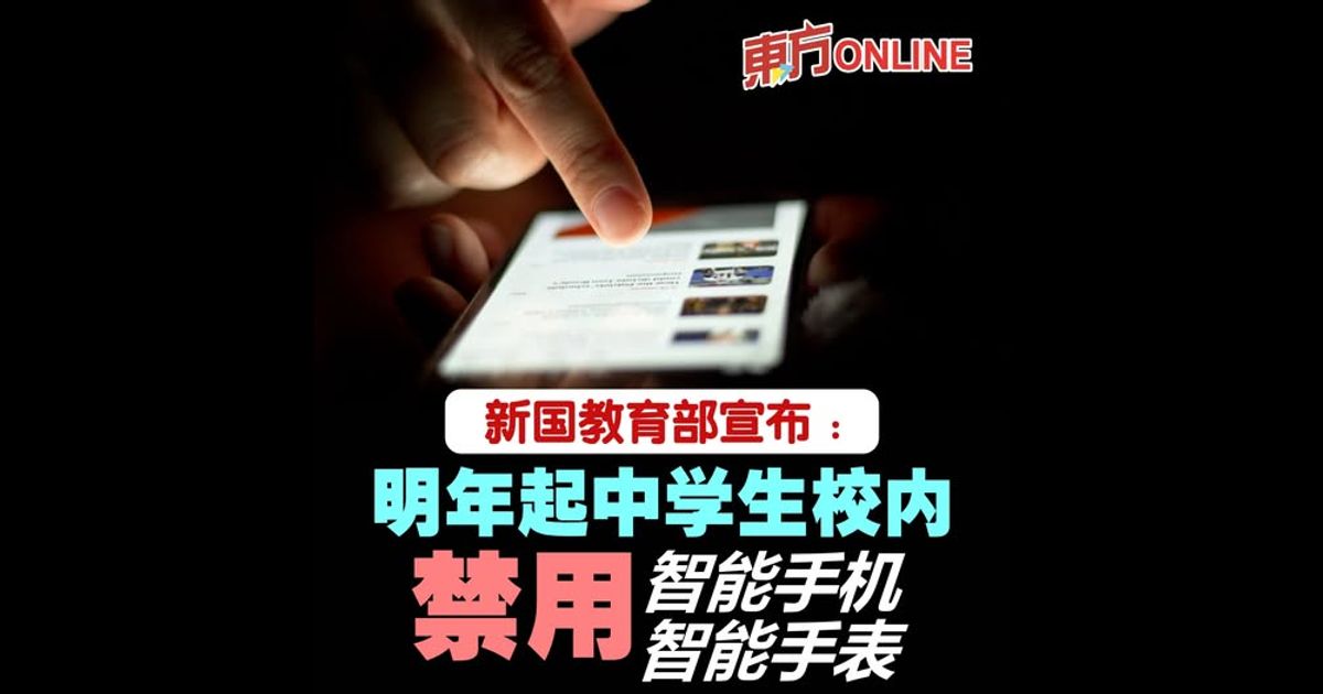 (新加坡30日讯)新加坡教育部宣布,从明年1月起,中学生除了被禁止将手机、智能手表等智能设备带入课堂使用,他们在课间休息、课外活动以及增益课程期间,也同样不得使用这些设备。