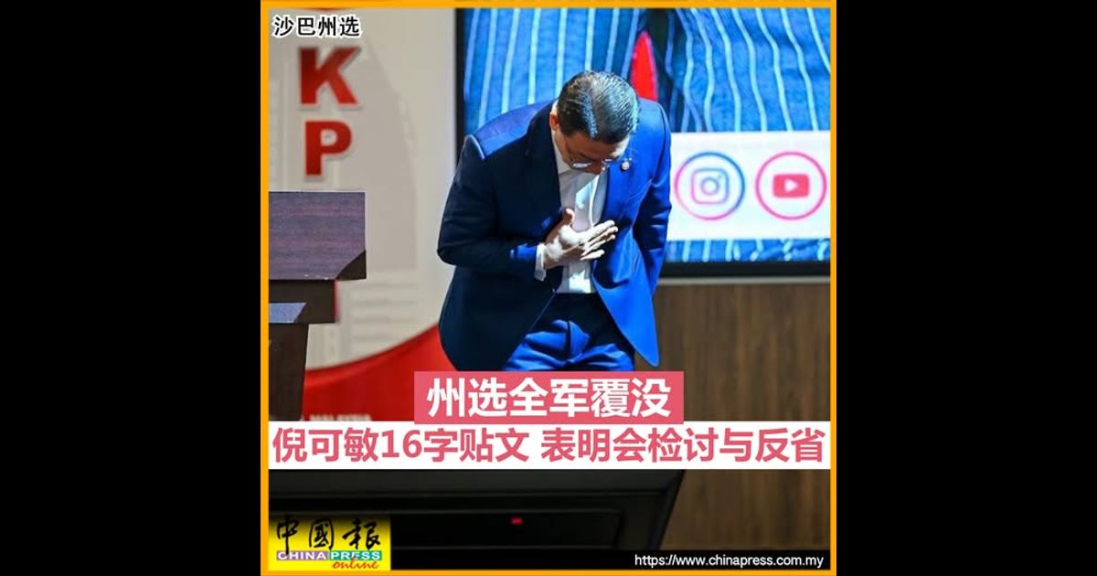沙巴州选|州选全军覆没 倪可敏16字贴文 表明会检讨与反省