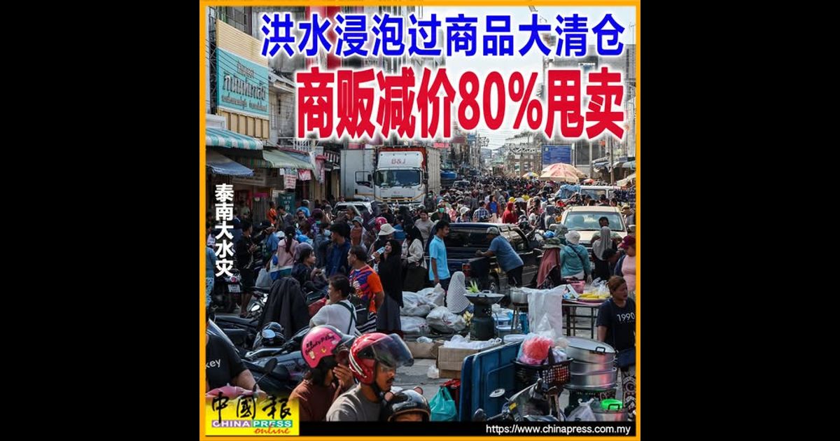(合艾30日综合电)泰国南部宋卡府合艾市被洪水淹了数天后,洪水终于退去,家家户户都在进行清理工作,而商贩则以多达80%的折扣来清仓甩卖被洪水浸泡过的商品,结果吸引了大批当地居民和游客前来选购。