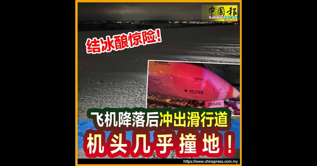 结冰酿惊险!飞机降落后冲出滑行道 机头几乎撞地!