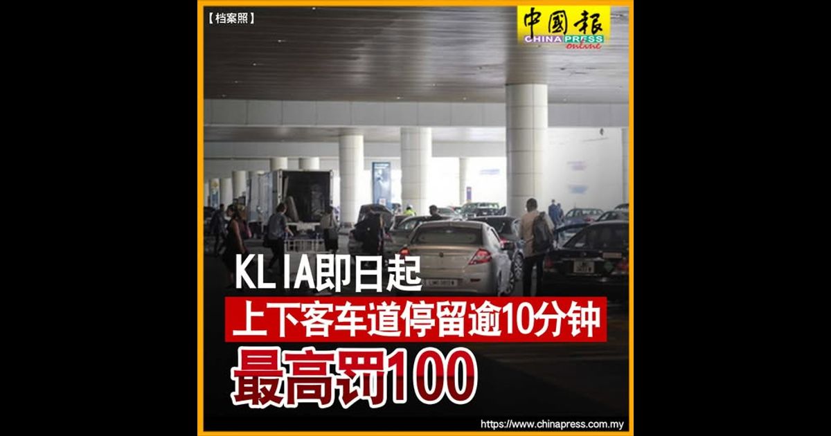 KLIA即日起 上下客车道停留逾10分钟 最高罚100