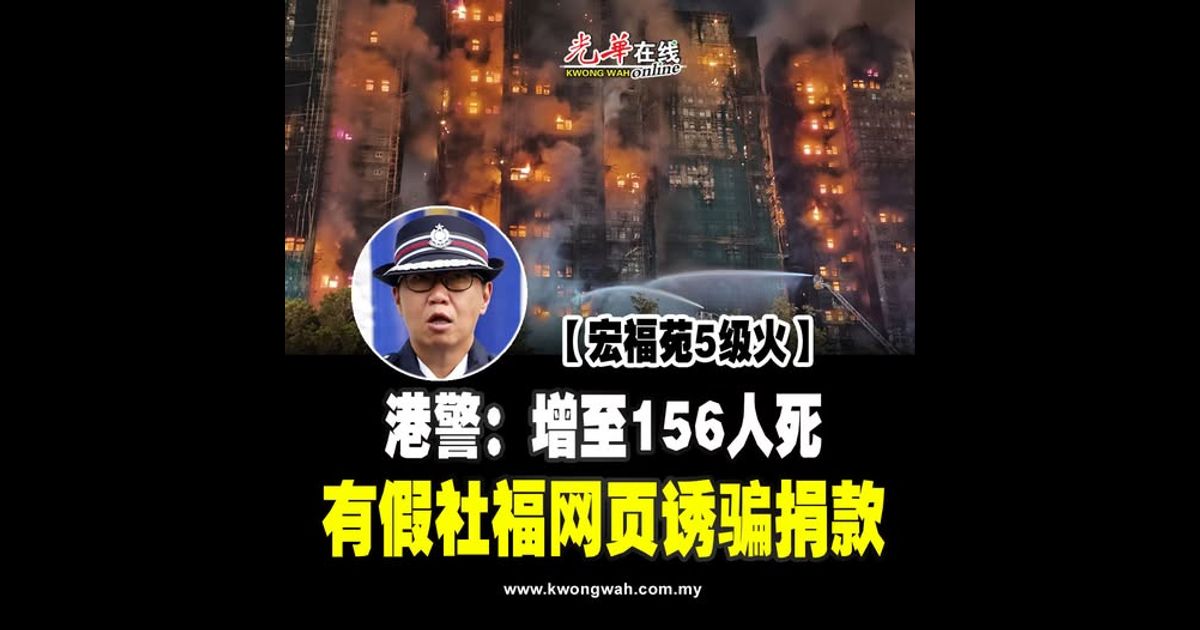 香港大埔宏福苑5级火,警方2日公布死亡人数上升至156人,仍有30人失联。再多两人涉嫌误杀被捕,至今累计15人被捕。警方亦指,发现网上有模仿社福机构的网页诱骗市民捐款,1日就此拘捕一名傀儡户口持有人。
