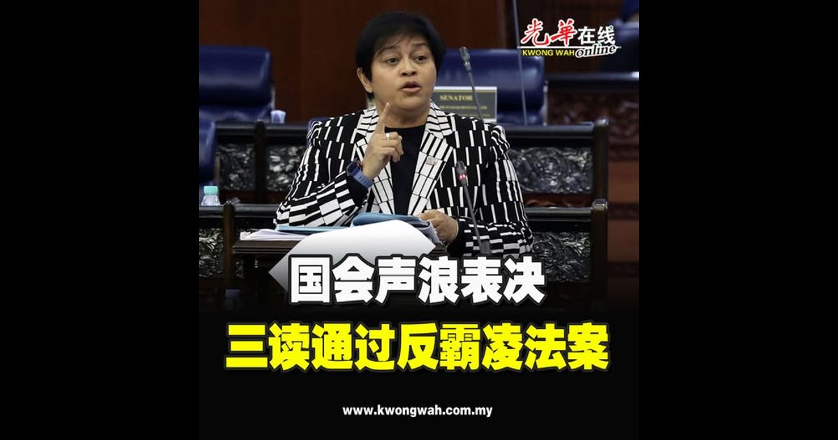 国会周三以声浪表决,三读通过《2025年反霸凌法案》。