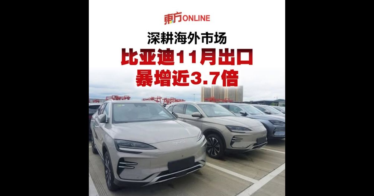 深耕海外市场 比亚迪11月出口暴增近3.7倍
