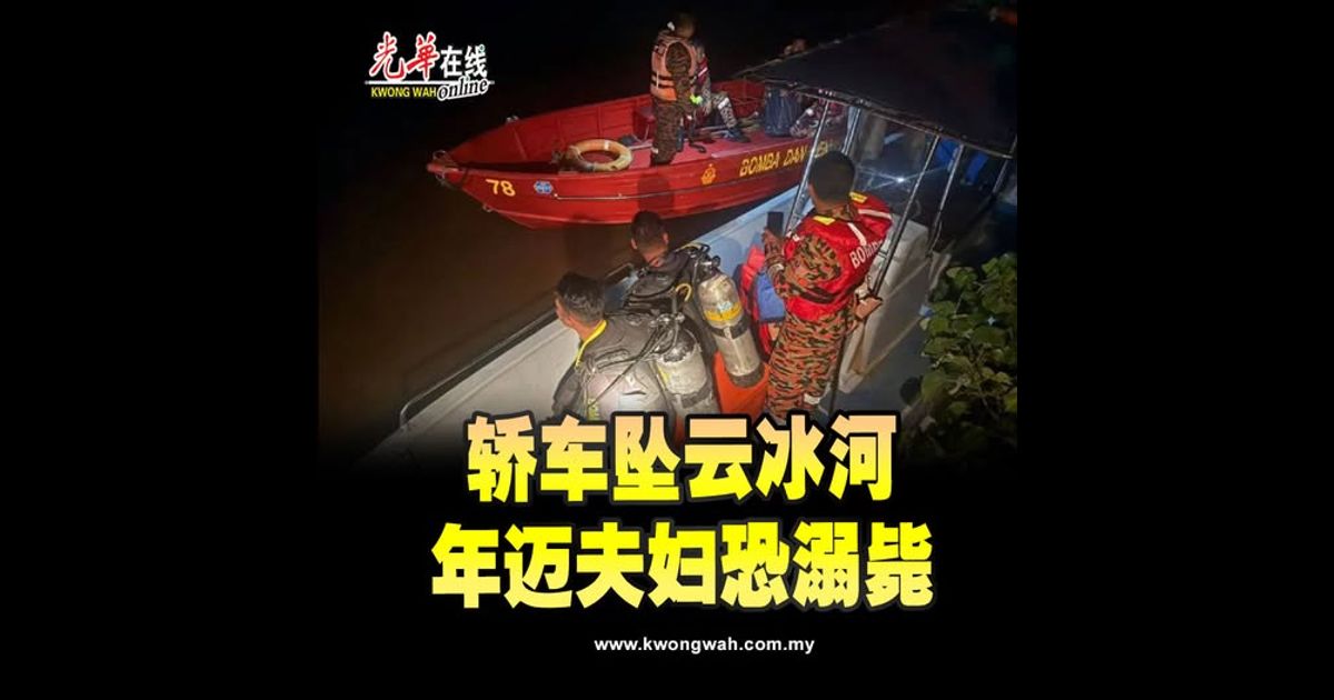 瓜拉云冰周二(2日)发生一起意外事故,一辆轿车在甘榜兰斗班让邻近坠落云冰河中沉没,车上一对年老夫妇相信已溺毙。