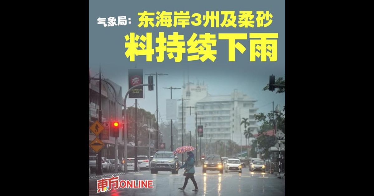 (吉隆坡7日讯)气象局预报,东海岸3州吉兰丹、登嘉楼及彭亨今日将出现持续降雨、而柔佛和砂拉越州部份地区也会下雨 。