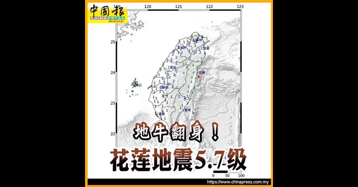 (台北8日综合电)根据台湾中央气象署详细地震报告,周一下午7时24分发生有感地震,震央位于花莲县近海,地震深度24.5公里,初判5.7级。