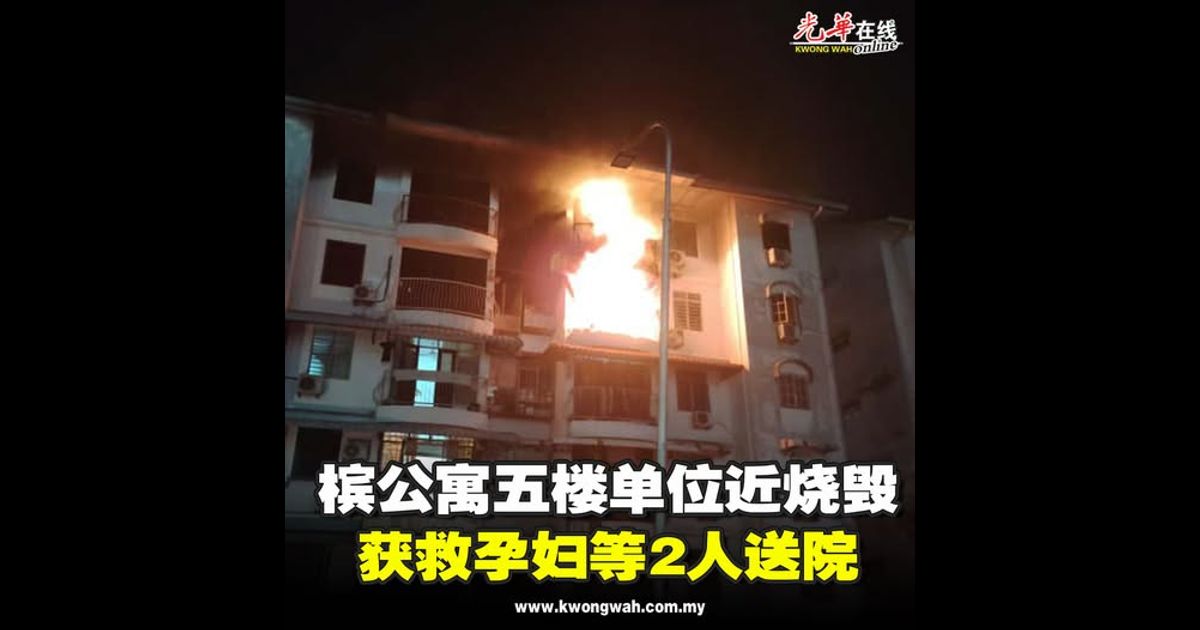 槟岛发林丹绒阁一座公寓5楼一单位周六(6日)晚失火,造成单位80%面积被烧毁,所幸消拯员及时到场将一名怀孕已3个月的孕妇及另一人救出!