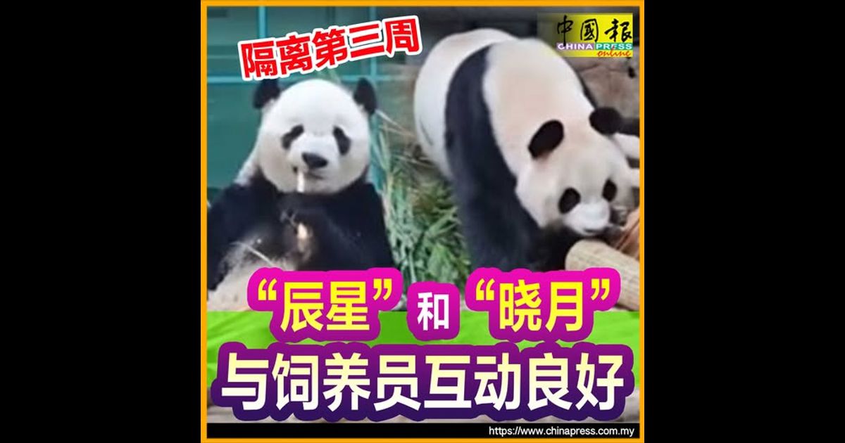 (吉隆坡9日讯)旅马大熊猫“辰星”和“晓月”在国家动物园隔离检疫迈入第三周,两只大熊猫已与饲养员建立了良好互动关系,能配合完成各项训练。