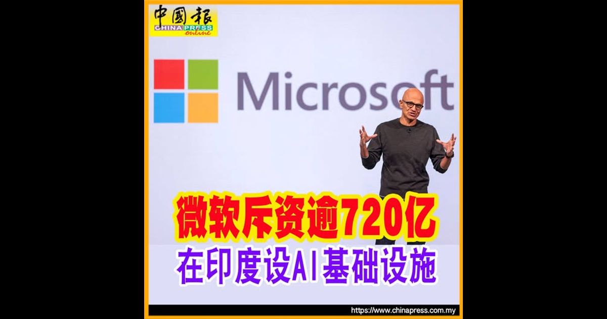 (新德里10日综合电)全球科技巨头微软周二宣布,计划投资175亿美元(约720亿1700万令吉)建设印度人工智能基础设施,这也是微软迄今在亚洲投入的最大一笔资金。