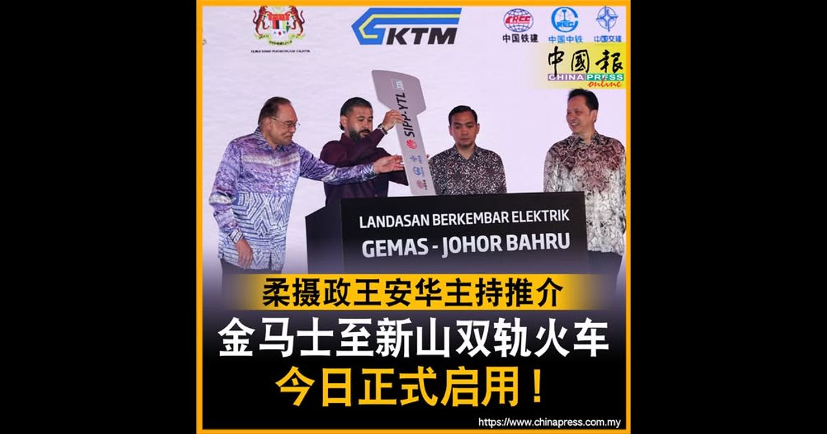 “金马士至新山双轨铁路完工,意味着全国南北铁路正式实现电气化双轨贯通,这让南部柔佛新山能以双轨电动火车连接全国最北端的巴东勿刹,成为我国铁路史上的重要里程碑。”