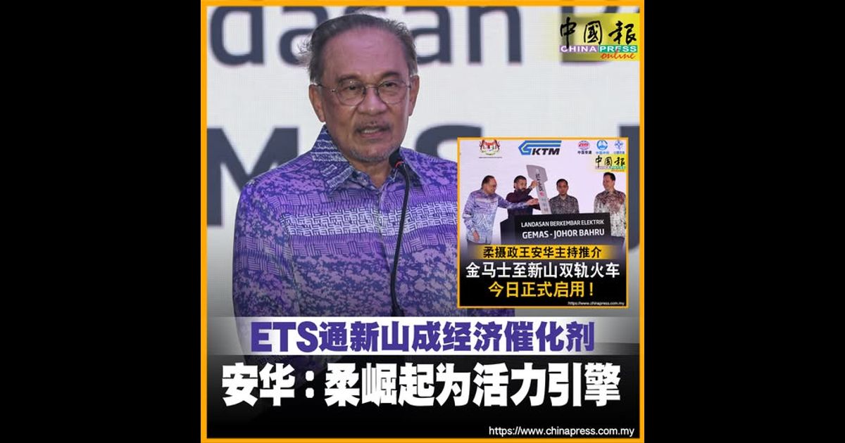 (新山11日讯)首相拿督斯里安华指出,柔佛州近年来在投资与经济表现方面强劲崛起,已成为全国最具活力的经济引擎之一,而双轨电动火车(EDTP)延长至柔佛州新山的启用,将成为柔佛州与国家经济发展的重要“催化剂”。